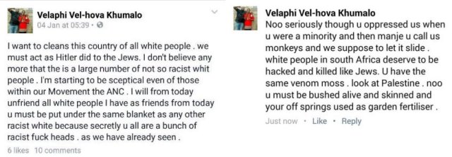In terms of expression A, in South African Human Rights Commission v Khumalo, the statements posted on social media were “statements prohibited by section 10(1) of the Equality Act”. This finding seems obvious, and precisely the type of expression that should be prohibited in the interests of nation building. The court ultimately ordered an apology, that the statements were declared to be speech prohibited in terms of section 10(1) of the Equality Act, and that the matter should be referred to the Director of Public Prosecutions. Currently, I am unable to determine whether criminal proceedings against Mr. Khumalo have been instituted, or whether the National Director of Public Prosecution declined to prosecute.